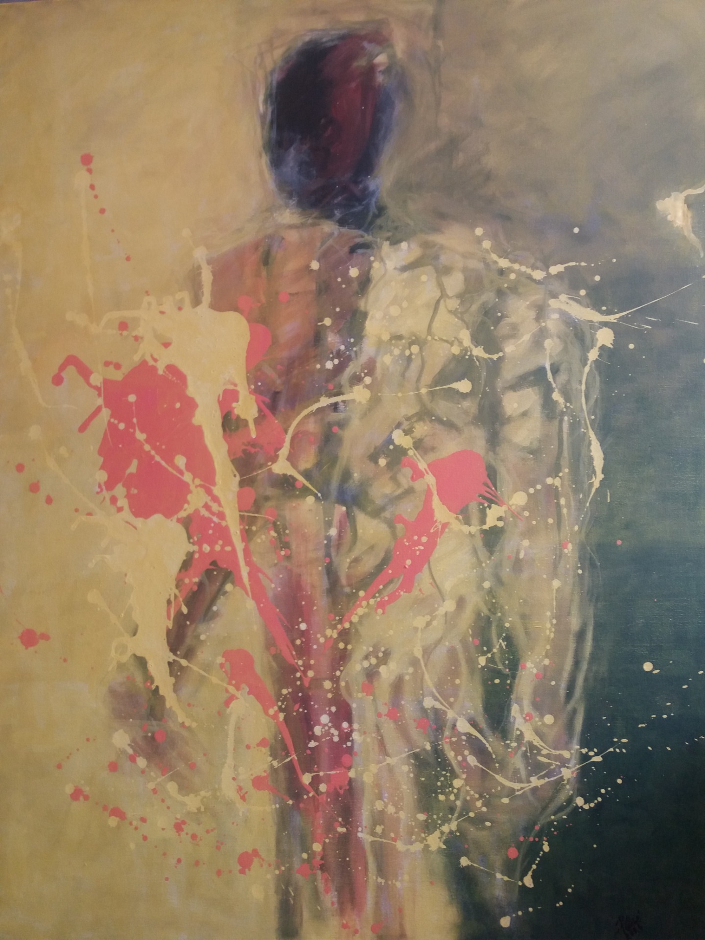 Pjäsen startar med att mannen sitter vid bordet med nedsänkt huvud i sina händer.